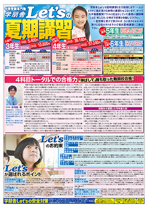 学朋舎Let’sは夏期講習も全力投球します!一人ひとりがご満足頂ける納得の講習をおこないます。かつて大手塾最難関クラスの担当をしていた最高の講師陣による「考える力」を伸ばす授業を体験して下さい。一度授業を受けて頂ければ、その良さをおわかり頂ける自信があります。夏期講習へのご参加お待ちしています。